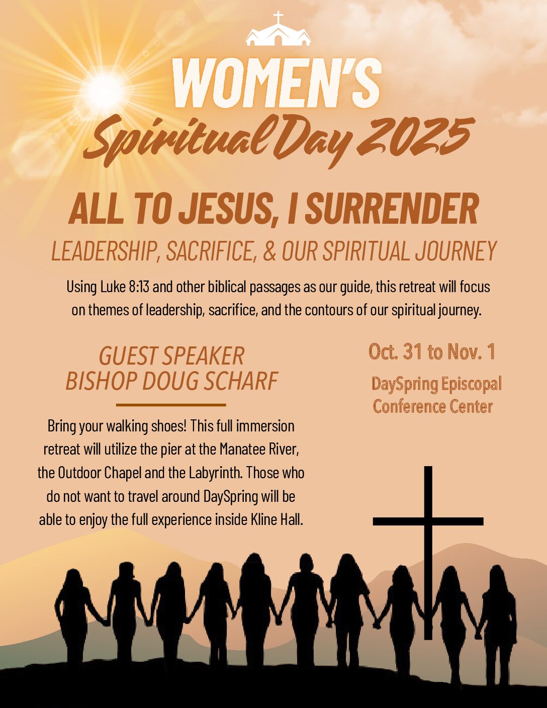 The ECW of Southwest Florida and the Diocesan Assembly of the Order of the Daughters of the King are pleased to present a joint event this November at DaySpring Conference Center. We invite you to join us and guest speaker The Rt. Rev. Douglas Scharf, Bishop of Southwest Florida, for this Women’s Spirituality Day, All to Jesus, I Surrender. This retreat will focus on Leadership, Sacrifice, and Our Spiritual Journey.